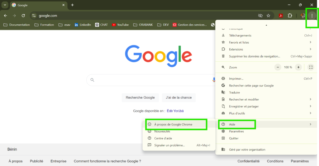 - Cliquez sur « À propos de Google Chrome » dans le menu d’aide.